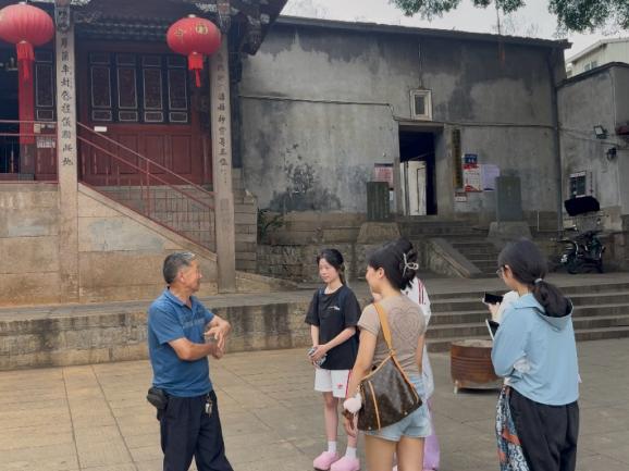 7月4日,实践团赴国家级历史文化名村林浦村开展民俗文化专项调研。按照 “建筑遗存考察—民俗活动记录—村民访谈交流”的流程,先后考察泰山宫、濂江书院、林浦宋井、世宫保尚书林公家庙等文化地标。