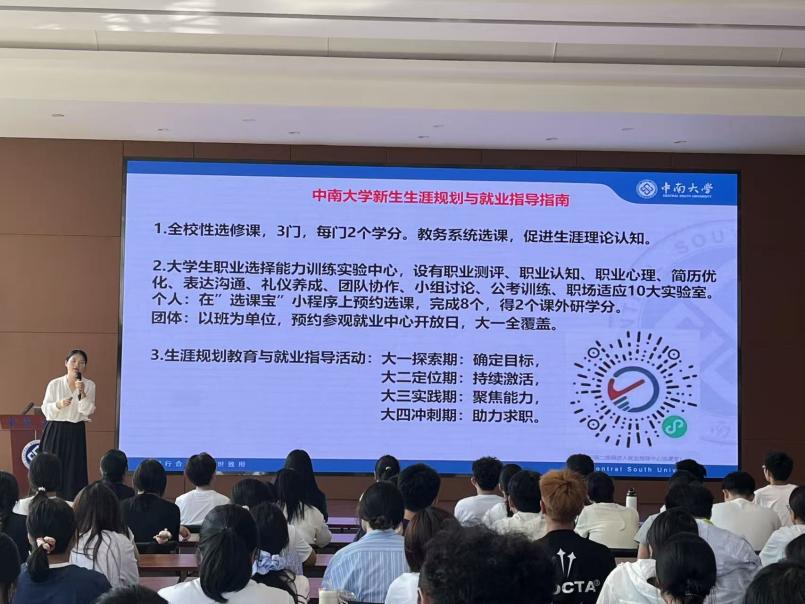 为助力新生在大学伊始锚定方向、稳步前行,9月28日上午9时,我们于潇湘校区毓秀楼238召开了以“多维赋能,为新生绘制职业发展‘导航图’”为主题的新生生涯教育大会。本次大会由2025级新生辅导员梁慧主讲,全体新生参加。