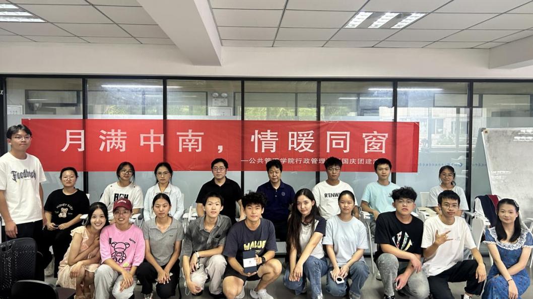 10月2日下午2时,我们在知新馆团辅教室B为双节期间留校同学举办“月满中南,情暖同窗”主题团建活动。学院副院长李晓飞、公共管理系系主任欧阳万福、班导师代表董文琪、系副主任杨宇泽,新生班助代表王松阳、杨语嫣参加,与同学们共庆佳节。活动由行管2501班吴欣怡同学主持。