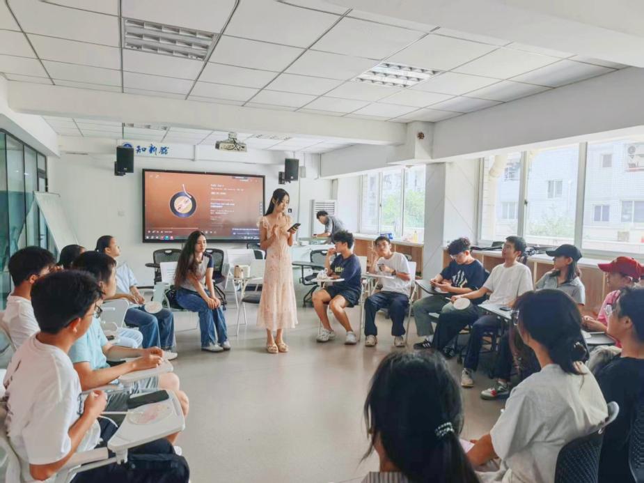 活动在“击鼓传花”中拉开序幕,接到彩花的同学依次展示才艺,吉他弹唱、即兴小品、绕口令等节目,赢得阵阵掌声。随后的“方言传话”环节,同学们用各地方言传递节日问候,现场气氛活跃,展现了方言文化的独特魅力。“抢凳子”比赛紧张有趣,同学们在互动中增进默契。之后的桌游和卡牌游戏环节为大家提供了轻松交流的机会,师生围绕学业、生活等话题畅所欲言。游戏最后,老师们为同学送上文创礼物。